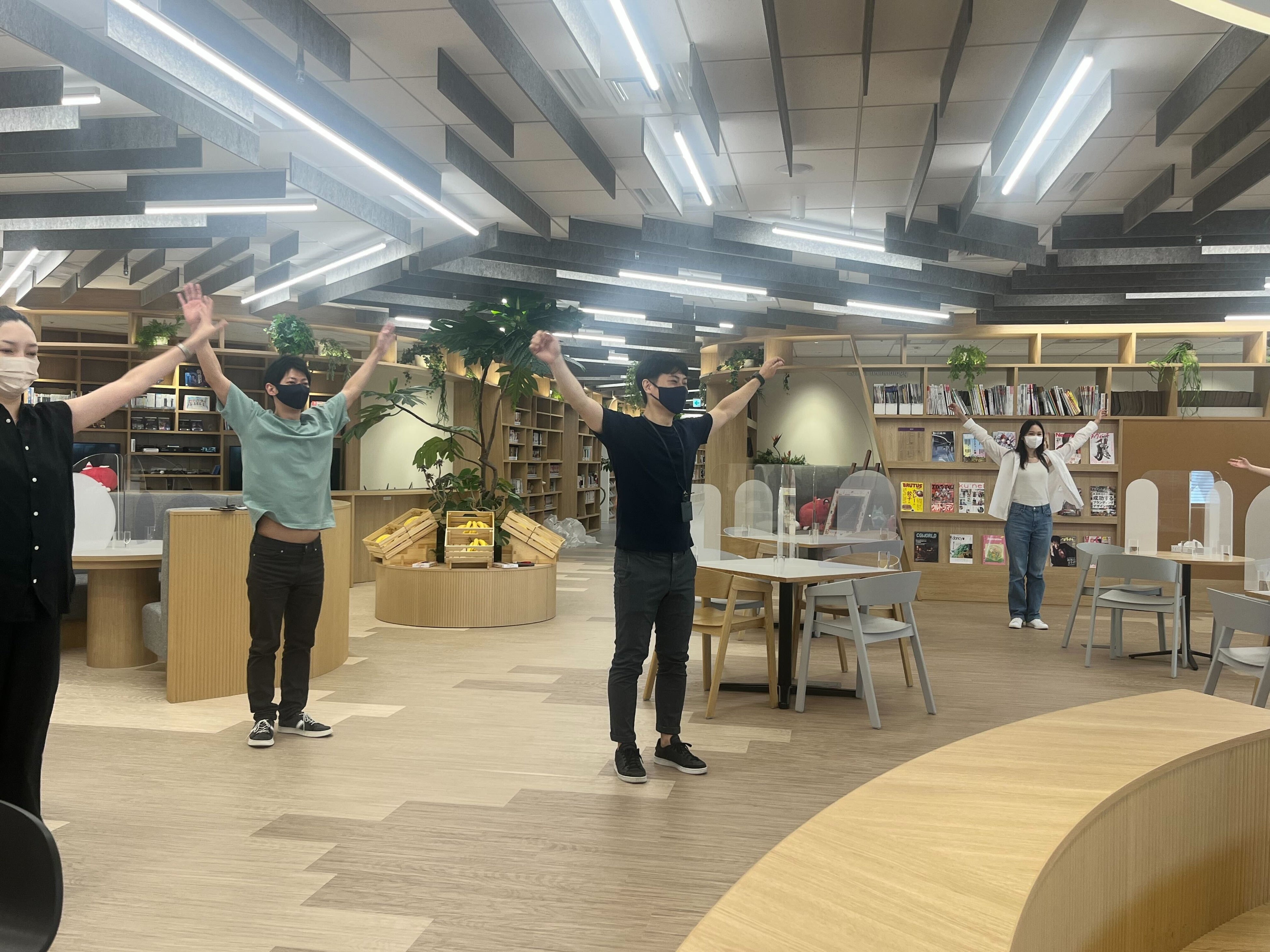 コロプラでは、運動不足にもなりがちなコロナ禍、誰もが簡単にできて続けられる施策ということでラジオ体操を行うようになりました。開始当初は人事部や開発チームでそれぞれで定期的に実施していましたが、継続するにつれて参加者の健康意識が高まり、「毎日ラジオ体操会」と名付けた部活動が発足されました。コロプラでは仕事の繋がりだけでなく、仕事以外のところでも幅広い交流ができるよう部活動を推奨し、運動系、文科系合わせて約30種類の部活動が行われています。