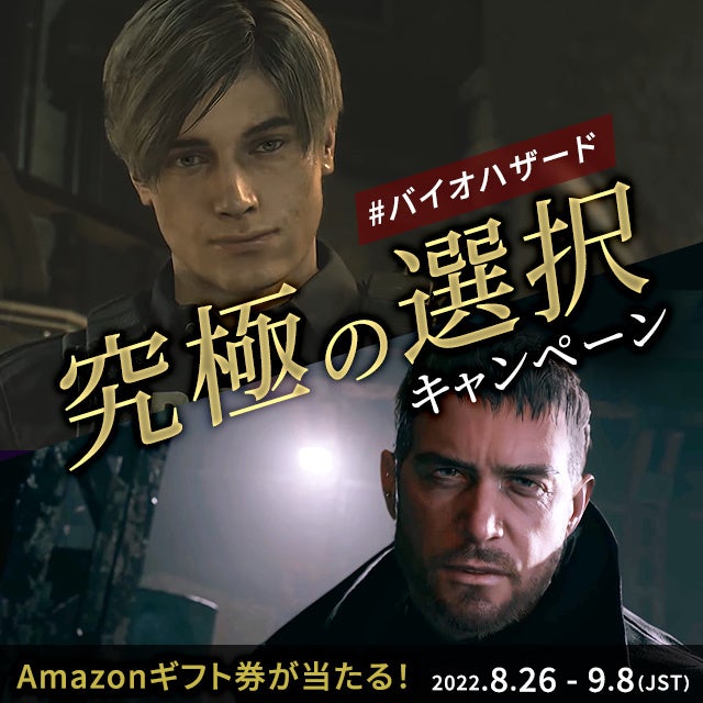 この度、バイオハザードの世界観をより多くの方に体感していただくため、8月26日(金)より、抽選でAmazonギフト券1000円分(総額10万円分)がその場で当たる「#バイオハザード究極の選択 キャンペーン」をTwitter上で実施します。