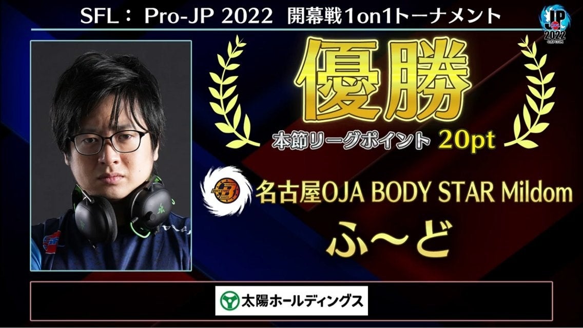 - 「ストリートファイターリーグ: Pro-JP 2022 開幕戦 1on1トーナメント」優勝は「名古屋OJA BODY STAR Mildom」ふ~ど選手!