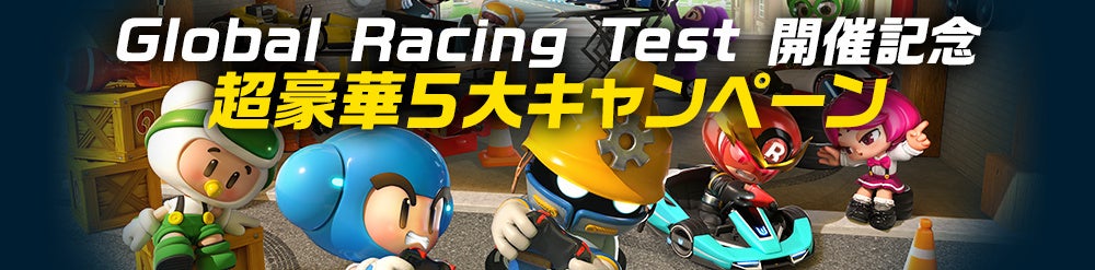 5大キャンペーンも開催予定です。各キャンペーンの参加方法などの詳細は、「Global Racing Test」開始時にご案内いたします。「Global Racing Test」をプレイしながら、各キャンペーンにもぜひご参加ください!