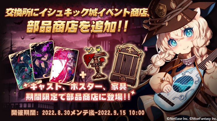イベントでは、イシュキック城を探索して素材を集め、「部品商店」で限定アイテムと交換できます。限定キャストやポスターなど、たくさんのアイテムが用意されています。