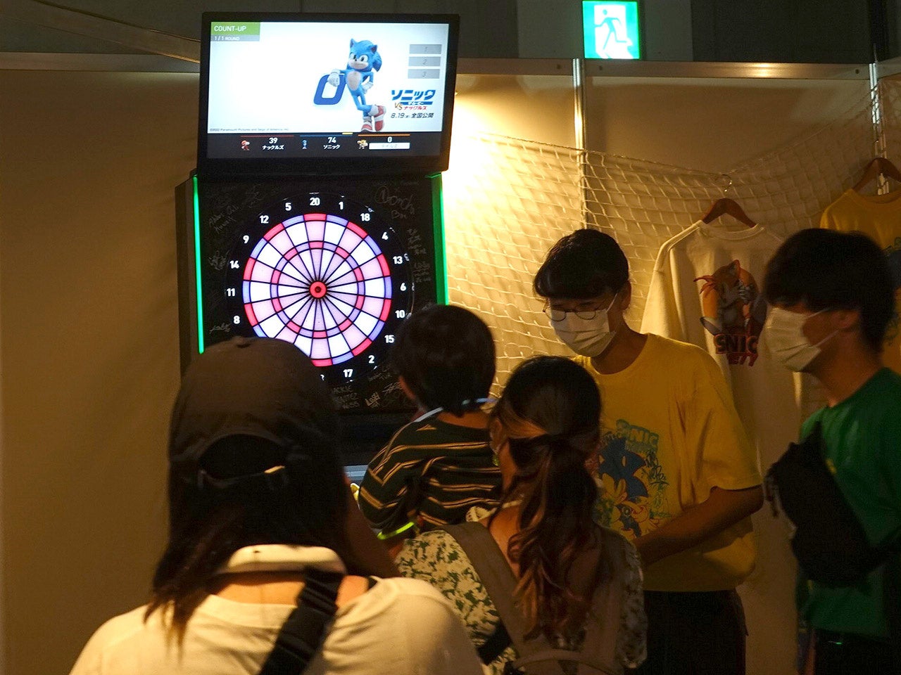 ブースではソニックのグッズ販売や、ソニックとコラボレーションしたダーツライブ3のプレイが可能でした。