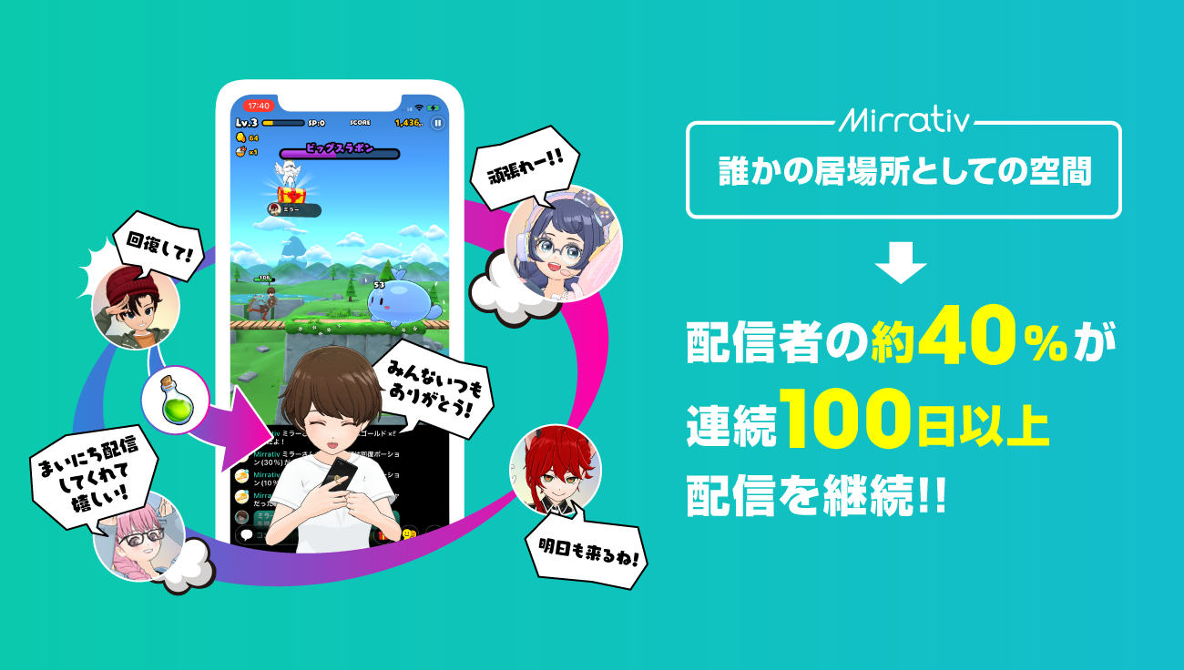ミラティブはこれまで、「わかりあう願いをつなごう」というミッションを掲げ、累計配信者430万人以上を有する日本最大級規模のゲーム配信プラットフォーム「Mirrativ」を運営してきました。