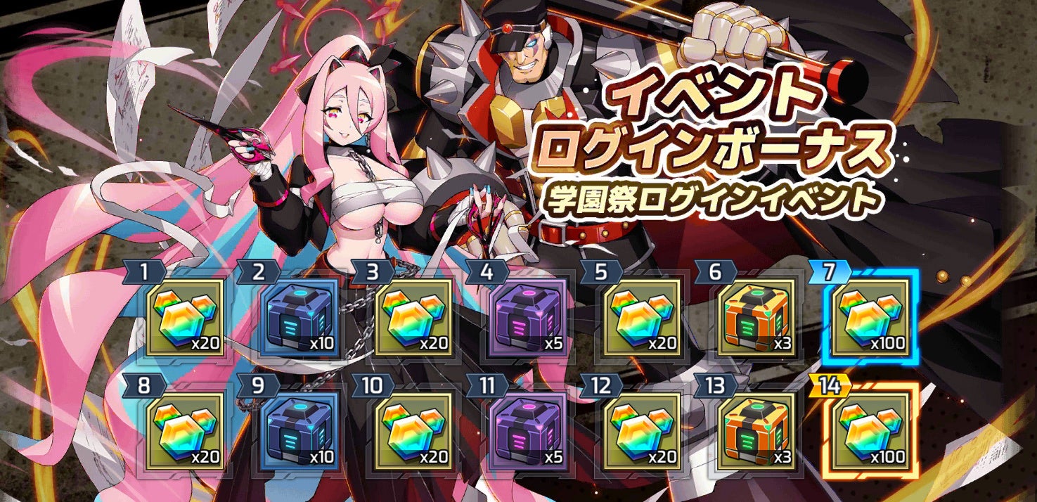 9月21日(水)13:00まで、「学園祭」イベント開催を記念して、ログインボーナスを開催いたします。エレメタル(無償)を最大320個プレゼント!