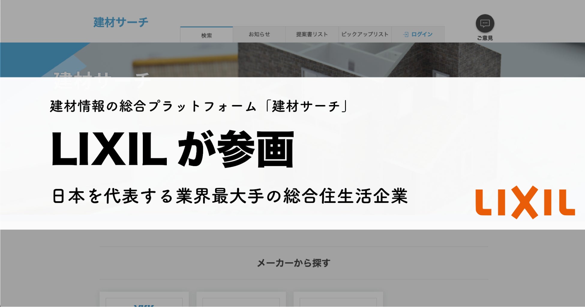 2022年9月1日、株式会社Archi Village(本社:港区、代表取締役社長:安田光希、以下、ArchiVillage)が運営する建材情報の総合プラットフォーム「建材サーチ」に株式会社LIXIL(以下、LIXIL)の参画が決定いたしました。