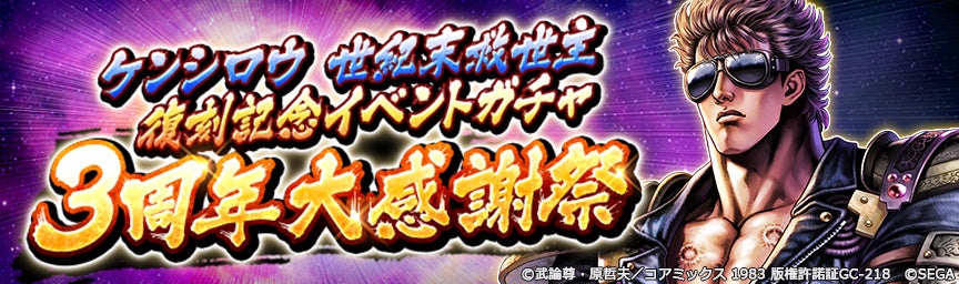 ◆UR「ケンシロウ 世紀末救世主」が復刻!“イベントガチャ:3周年大感謝祭”開催!
