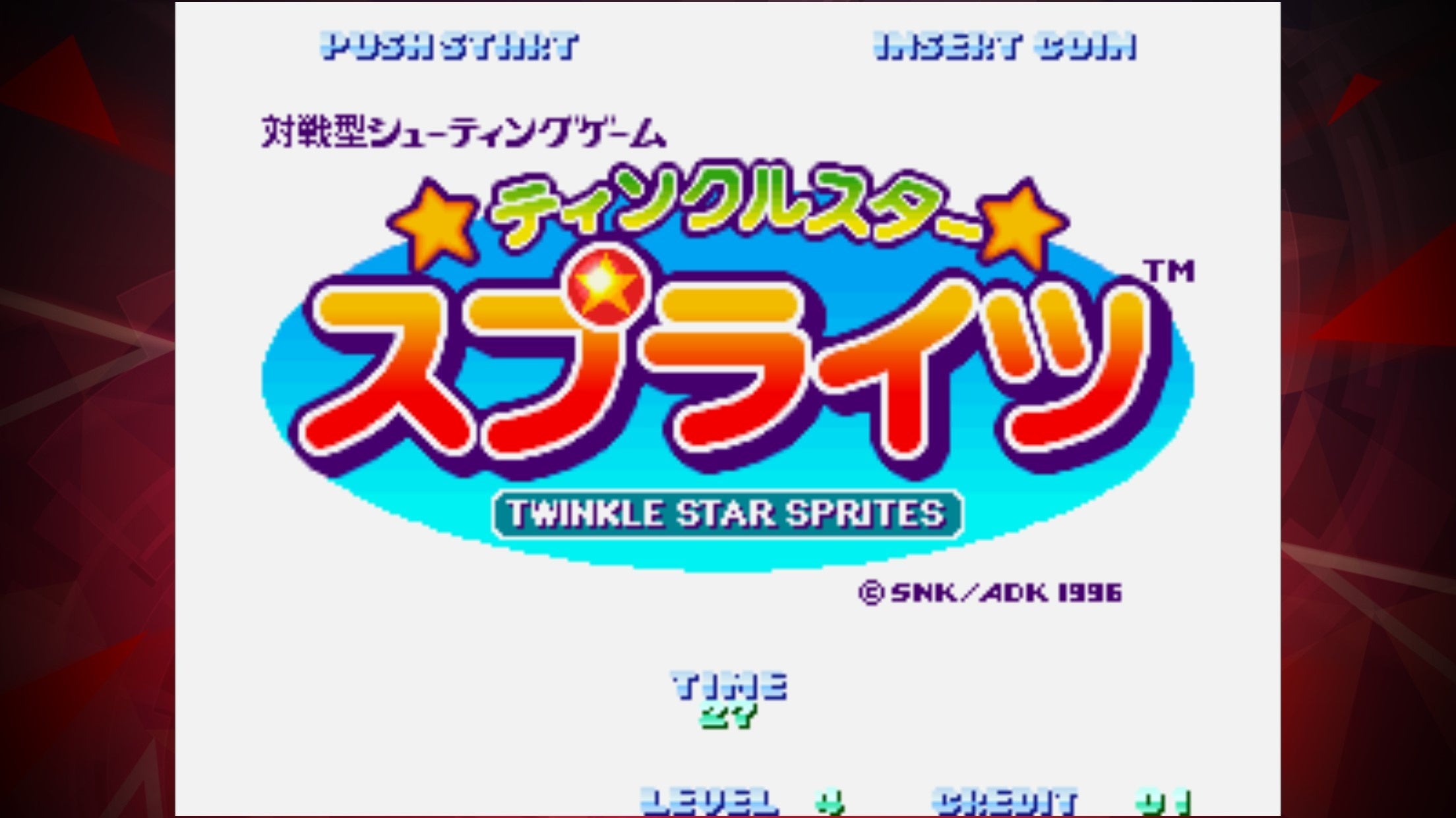 『ティンクルスタースプライツ』は1996年にSNKから発売された対戦型シューティングゲームです。目の前に迫る敵を「連爆」「ためショット」「ボム」などを駆使し、「攻撃ザコ」に変えて対戦相手を倒しましょう!可愛いキャラクターたちが画面せましと飛び回る新しいシューティングゲームを体験せよ!