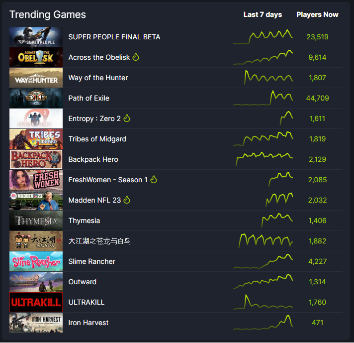 Steamトレンドゲーム順位(ソース: Steam DB)