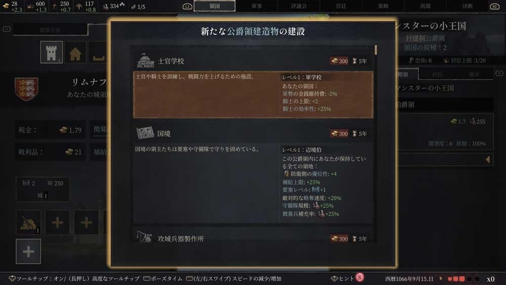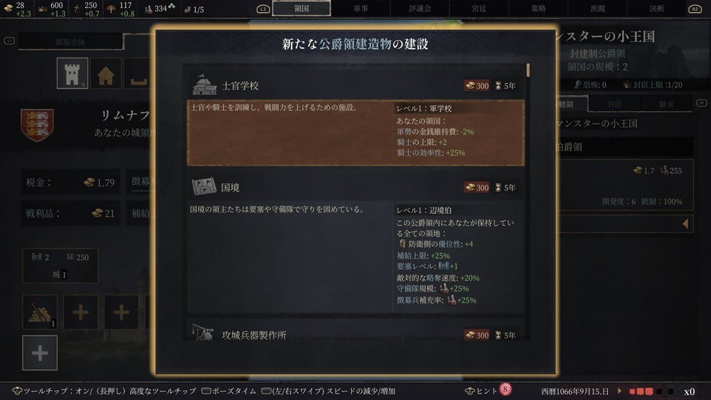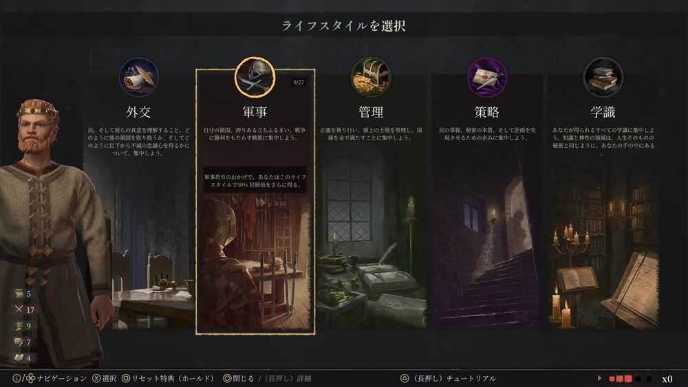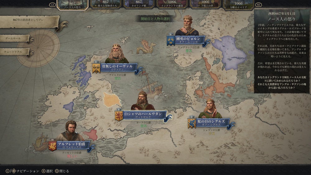 収める領地を決めるプレイヤーとなる領主は、予め用意された中から選択できます。貴族毎に難易度がある為、今作からプレイする方は難易度の低い領主を、過去作のプレイ経験があるプレイヤーは難易度の高い領主を選択して始めることも可能です。予め用意された地域以外からプレイすることも可能となっています。