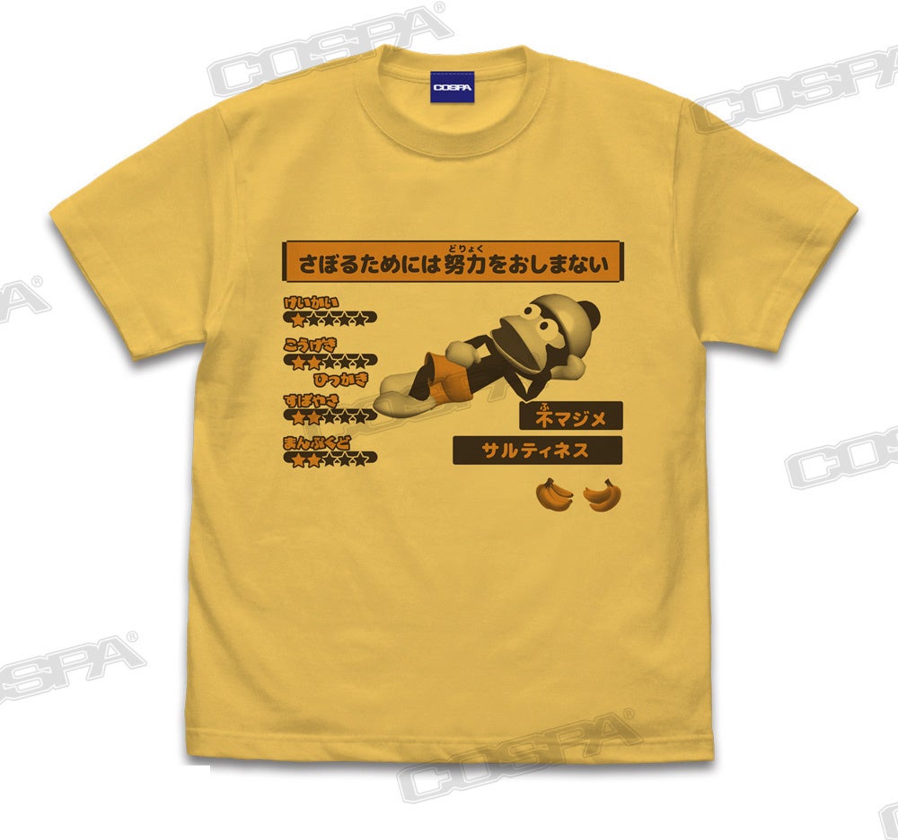 『サルゲッチュ』より、常に警戒を怠らない「ピポサル警戒中」Tシャツとステッカー、「さぼるためには努力をおしまない 」Tシャツなど新グッズがCOSPA(コスパ)より登場。