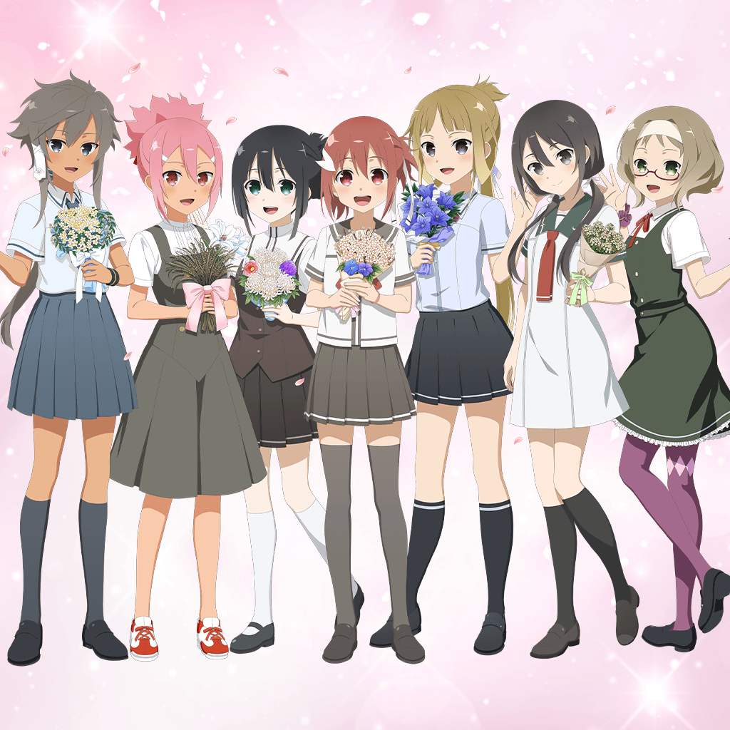 楠 芽吹(CV:田中 美海) / 国土 亜耶(CV:大野 柚布子) / 加賀城 雀(CV:種﨑 敦美) / 弥勒 夕海子(CV:大空 直美) / 山伏 しずく(CV:石上 静香)