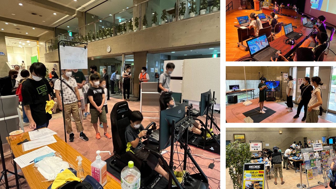 当日ご用意したデジタル体験は「LEGOプログラミング体験」「YouTuber体験」「HTC VIVE VR 体験」「eモータースポーツ体験」の4つ。また、フリーゲーミングエリアでは「ぷよぷよeスポーツ体験」「どうぶつタワーバトル」の体験ができました。会場内のあらゆる場所から楽しそうな笑い声や笑顔が溢れていました。