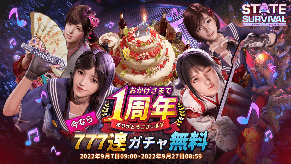 ウォーキングデッドとコラボしたタイトルとして話題のサバイバル戦略シミュレーションRPG『ステート・オブ・サバイバル』。世界中では1.5億超えのダウンロードを達成しており、今では世界最大級のサバイバルアクションゲームとして、「ステサバ」の愛称で親しまれています。日本では2021年8月26日にリリースされ、花澤香菜さん、杉田智和さんなど豪華な声優陣の参加により、大きな話題となりました。今回1周年を迎え、皆様が1年間生き残れたことを記念して、アニバーサリーイベント「Party On Survivors!」(パーティー オブ サバイバル)を開催いたします。