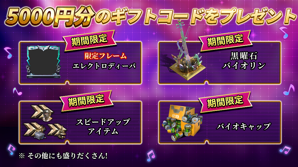 周年イベント期間内にダウンロードされた新規プレイヤーに5000円分のギフトコードをプレゼント!本キャンペーンは、限定フレーム、装飾、スピードアップアイテム、補給箱など、盛りだくさんな内容となっております。