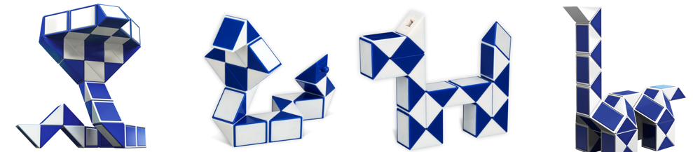 本商品は、直角二等辺三角形型のピースが24個つながっており、各ピースの向きを変えていくと、犬やお花などのモチーフを作ることができます。さらに、同商品は2個セットで、1個でも形づくりを楽しめて、2個つなげれば