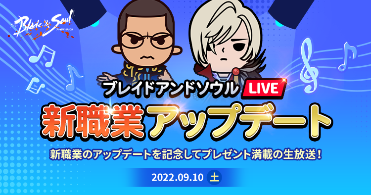 年に一度の新職業追加を目前にした9月10日(土)に、公式生放送「ブレイドアンドソウルLIVE新職業アップデート」を放送します!