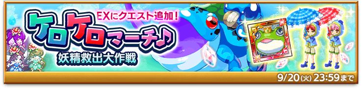 [アストレア 素材ドロップ&取得上限3倍キャンペーン期間] 2022/9/14(水)4:59まで■EXに高難度クエスト追加!「ケロケロマーチ♪」開催!