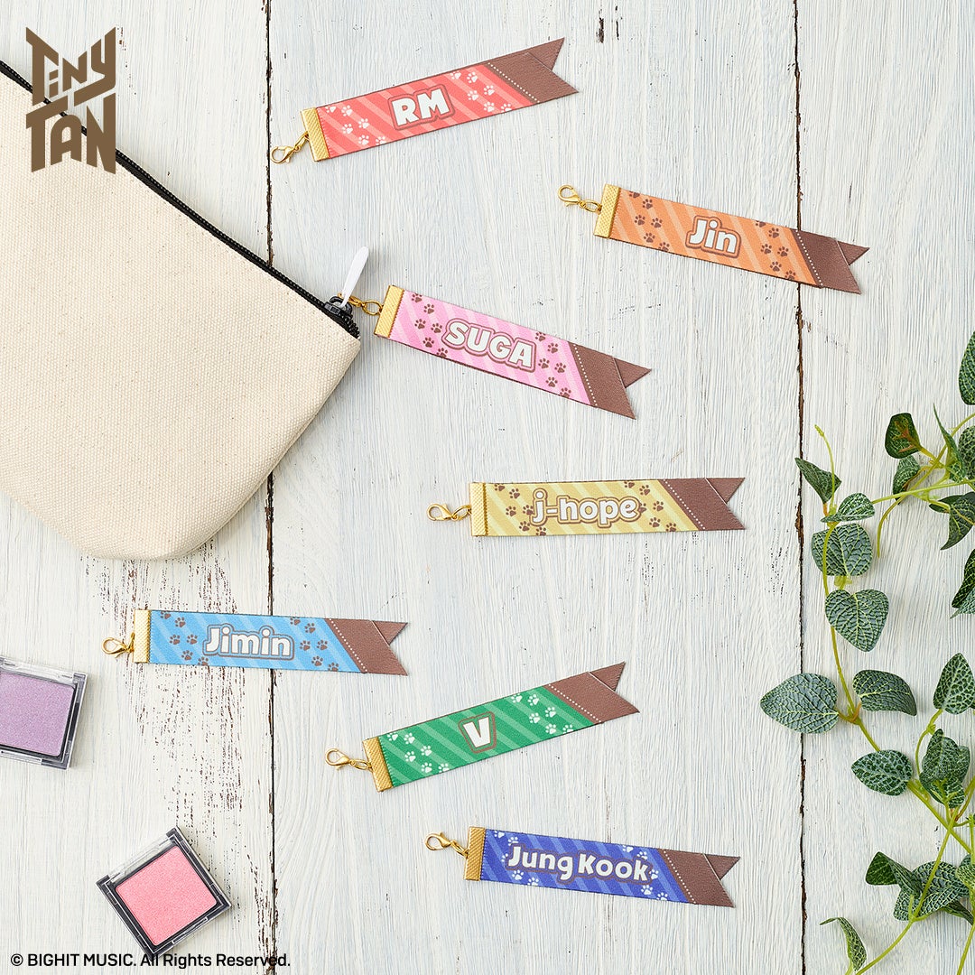 | 2022年10月14日(金)登場予定 オリジナルリボンチャーム 種類:7種/サイズ:W20×H100mm 『TinyTAN』キャラクターの名前をデザインした、リボン素材のチャームです。 |