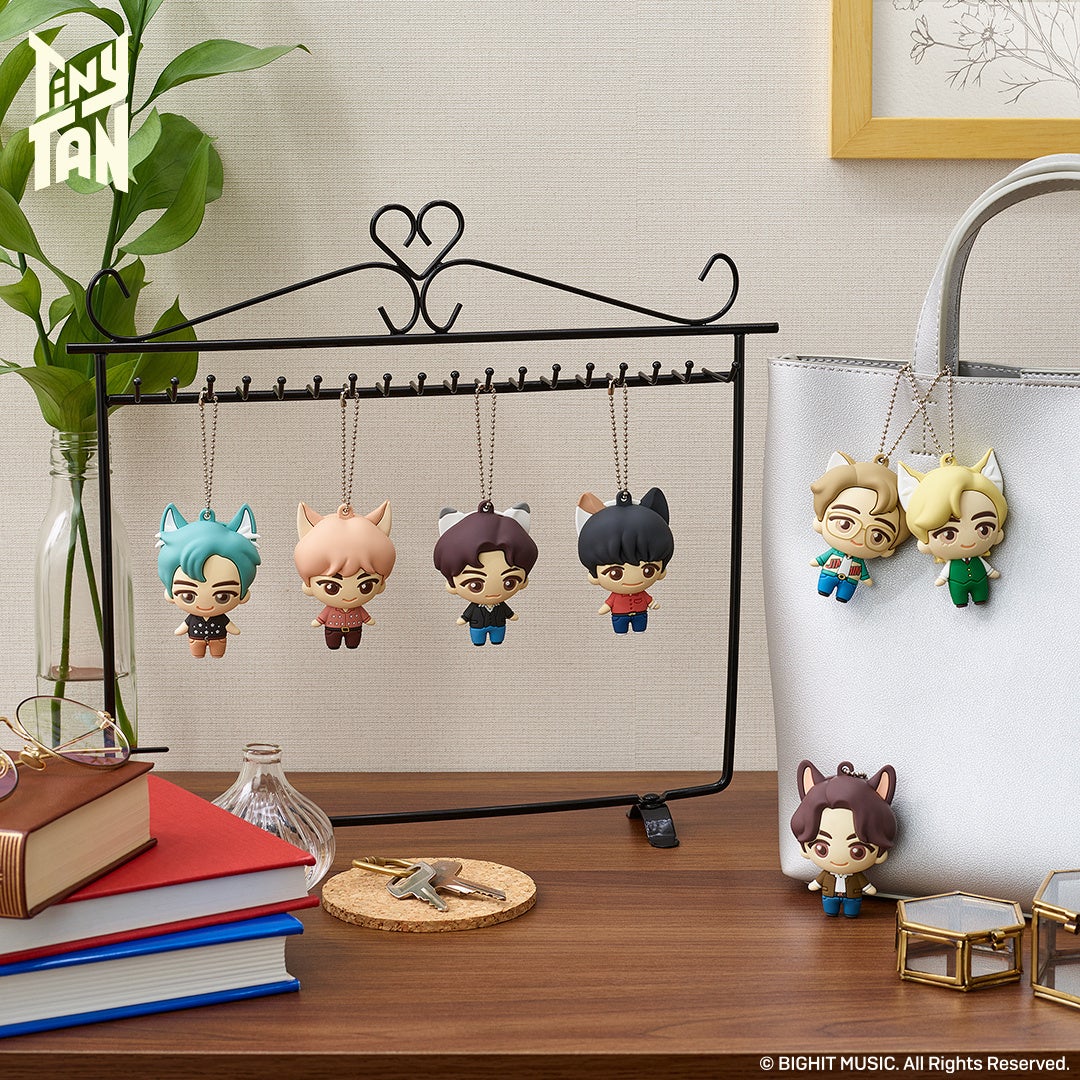 | 2022年9月22日(木)登場予定 1. TinyTAN Dynamite ラバーマスコットキーホルダー ~TinyTAN FUN PARK Style~ 種類:7種/サイズ:約6cm 左から:RM(アールエム)、Jin(ジン)、SUGA(シュガ)、j-hope(ジェイホープ)、 Jimin(ジミン)、V(ヴィ)、JungKook(ジョングク) ねこ耳カチューシャアレンジの『TinyTAN』イラストを使用した、ボールチェーン付きのラバーマスコットキーホルダーです。 |