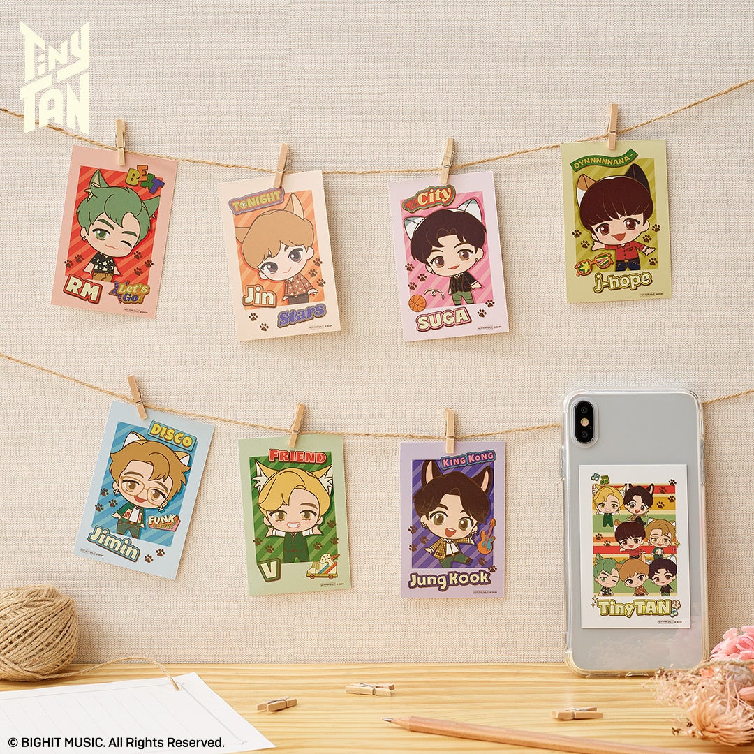 | 2022年9月22日(木)登場予定 オリジナルチェキ風カード 種類:8種/サイズ:W54×H86mm 上段左から:RM、Jin、SUGA、j-hope 下段左から:Jimin、V、JungKook、集合 ねこ耳カチューシャアレンジの『TinyTAN』イラストを使用した、チェキ風デザインの小さめのカードです。 |