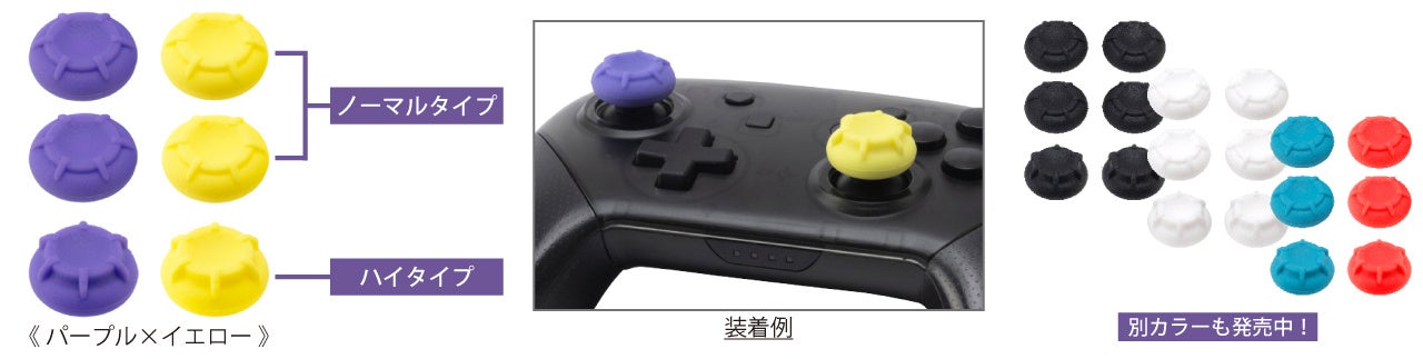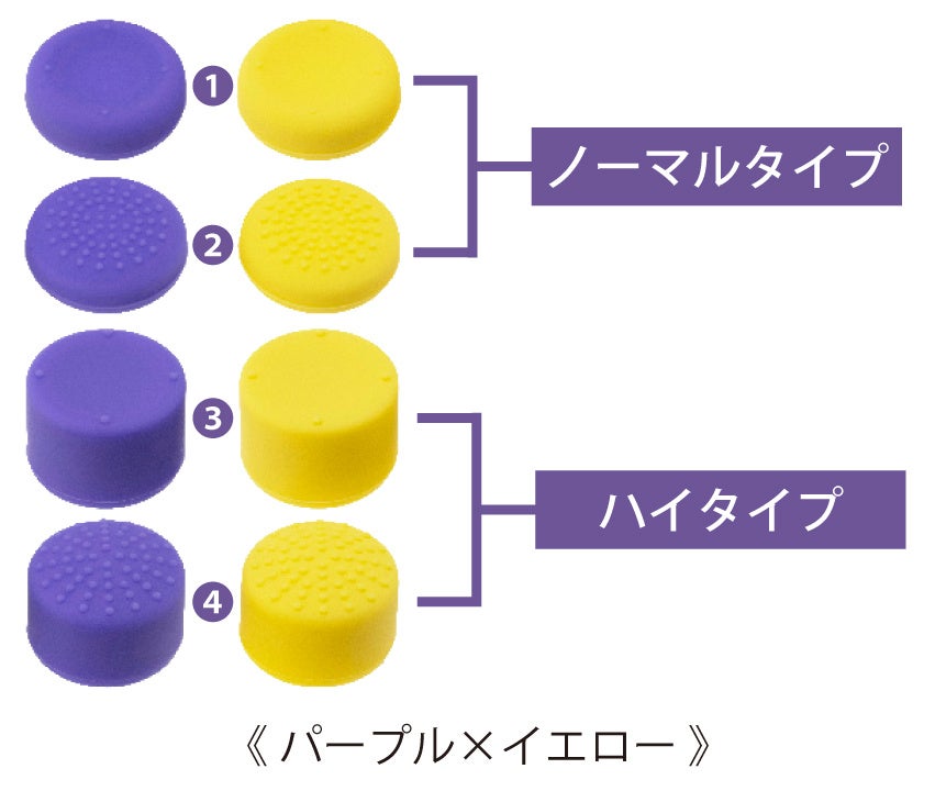・ゲームに合わせて選べる4種類の各2個セット。ハイタイプは操作位置が高くなることで、スティックの可動域が広くなり、通常より繊細な操作が可能