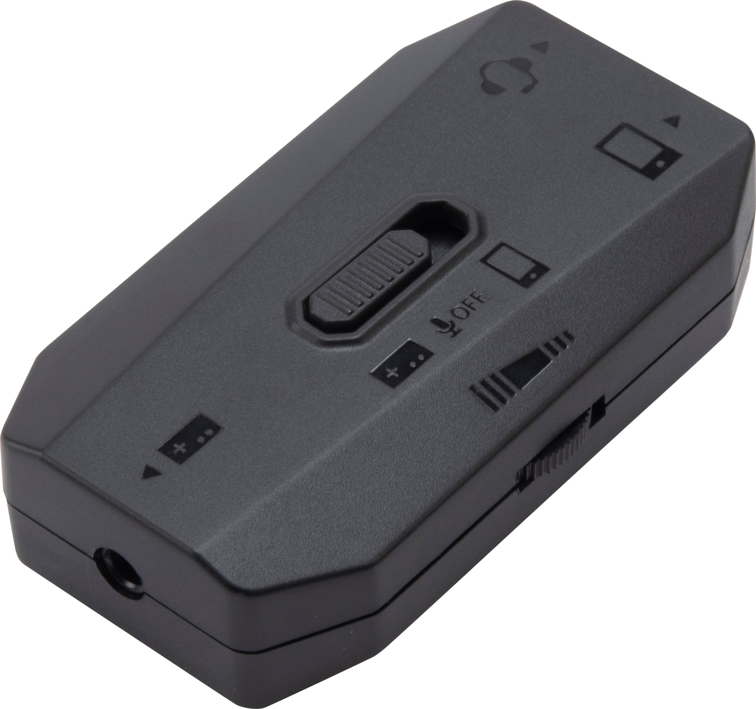 ・ゲーム機のヘッドホンマイク端子と、お好みのヘッドセット、スマートフォンの間に接続し、ゲームの音と通話音声をミックスして同時に聴くことができるオーディオミキサー