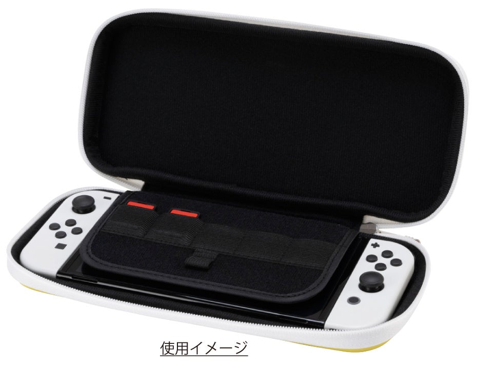 ・左右のJoy-Conを装着したSwitch本体またはSwitch(有機ELモデル)本体をそのまま収納できるセミハードケース