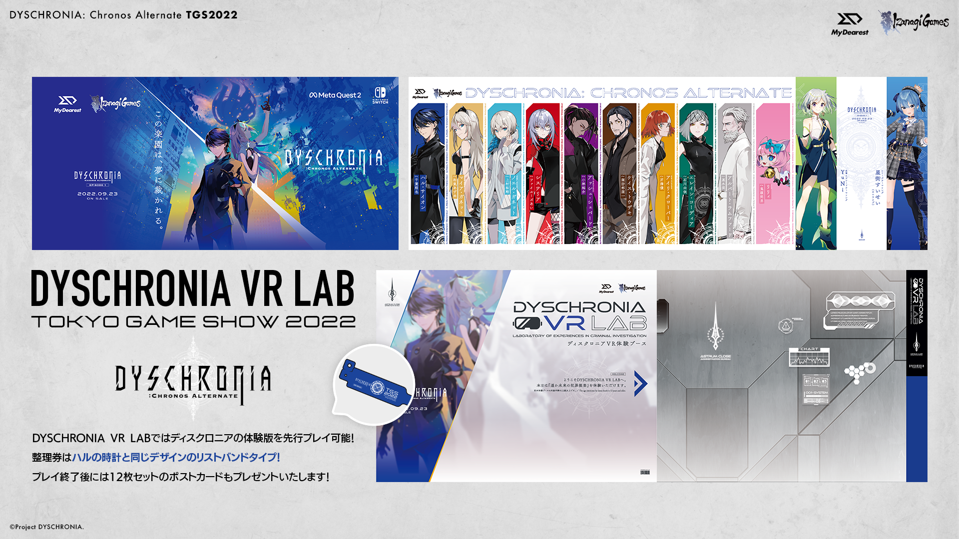 「東京ゲームショウ2022(TGS2022)」では、MyDearest/イザナギゲームズブースにて、9月23日発売予定のVR捜査ゲーム『DYSCHRONIA: Chronos Alternate(『ディスクロニア: CA』)』を出展いたします。