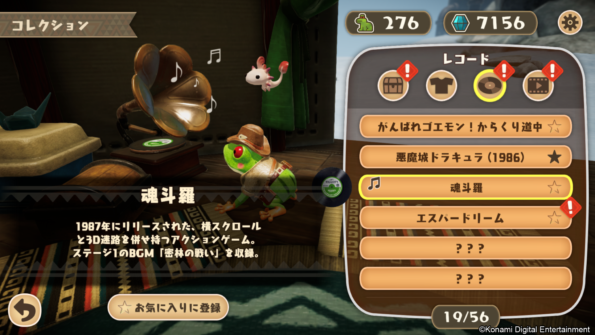 80~90年代の懐かしのKONAMIゲーム楽曲(40曲)が、「レコード」としてイモリ族の商人ニュートのショップに新登場!集めた「レコード」はゲーム中のBGMとしてもお楽しみいただけます!