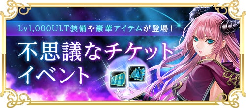 2022年9月7日(水)メンテナンス後から10月5日(水)メンテナンス前までに、対象モンスターを倒すと入手可能な「チケットの欠片(2022)」を集めると、集めた枚数に応じて、「Lv1000 ULTU」等級の装備などを選択して獲得できる「1000ULT選択BOX」や「魔力が宿った防具選択チケット」など、豪華アイテムと交換することができます。