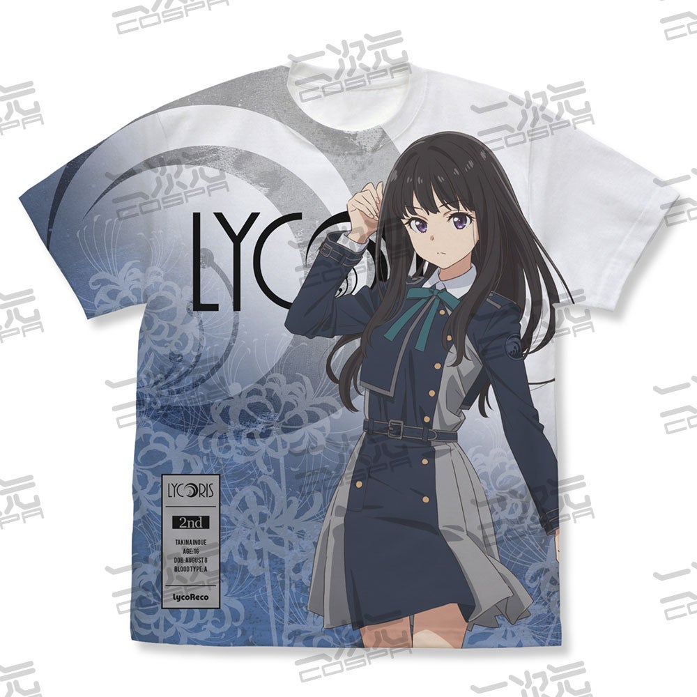 TVアニメ『リコリス・リコイル』より、“錦木千束”“井ノ上たきな”の「フルグラフィック Tシャツ」や、千束のセリフをデザインした「私はいつもやりたいこと最・優・先 ♪ Tシャツ」など二次元コスパから登場です。