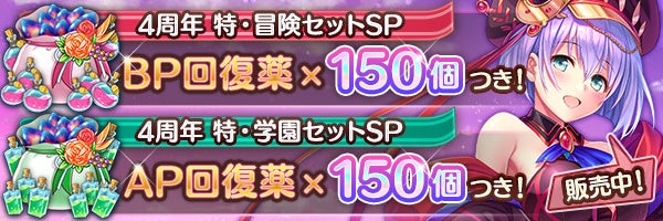 フレアライトとBP回復薬がセットになった、2種類の『4周年 特・冒険セット』と