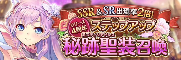 今までに登場した秘跡聖装が全て出現する、リリース4周年ステップアップ秘跡聖装召喚が開催!