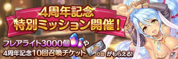 フレアライト3000個や『4周年10回召喚チケット』が4枚手に入る特別ミッションを開催!