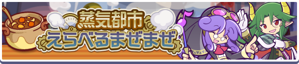 蒸気都市のキキーモラ、蒸気都市のセリリ、蒸気都市のサタン、蒸気都市のシェルブリック3世、蒸気都市のアコール先生、蒸気都市のルルー、蒸気都市のアルル、蒸気都市のドラコ、蒸気都市のウィッチ、蒸気都市のシェゾ、蒸気都市のアミティ、蒸気都市のシグ、蒸気都市のリデル、蒸気都市のラフィーナ、蒸気都市のクルーク、蒸気都市のりんご、蒸気都市のまぐろ、蒸気都市のレムレス、蒸気都市のりすくま、蒸気都市のフェーリ