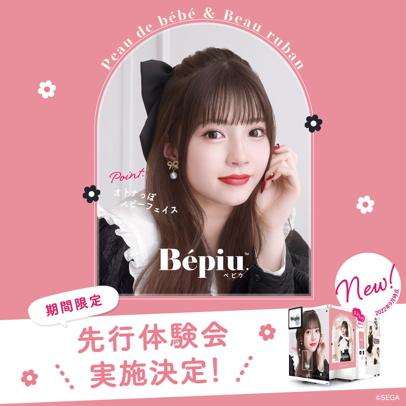 株式会社セガ(本社:東京都品川区、代表取締役社長COO:杉野行雄、以下 セガ)は、最新プリクラ機『Bépiu.(ベピウ)』を発表いたします。また、全国稼働に先駆けていち早くプレイできる先行体験会を期間限定で実施いたします。