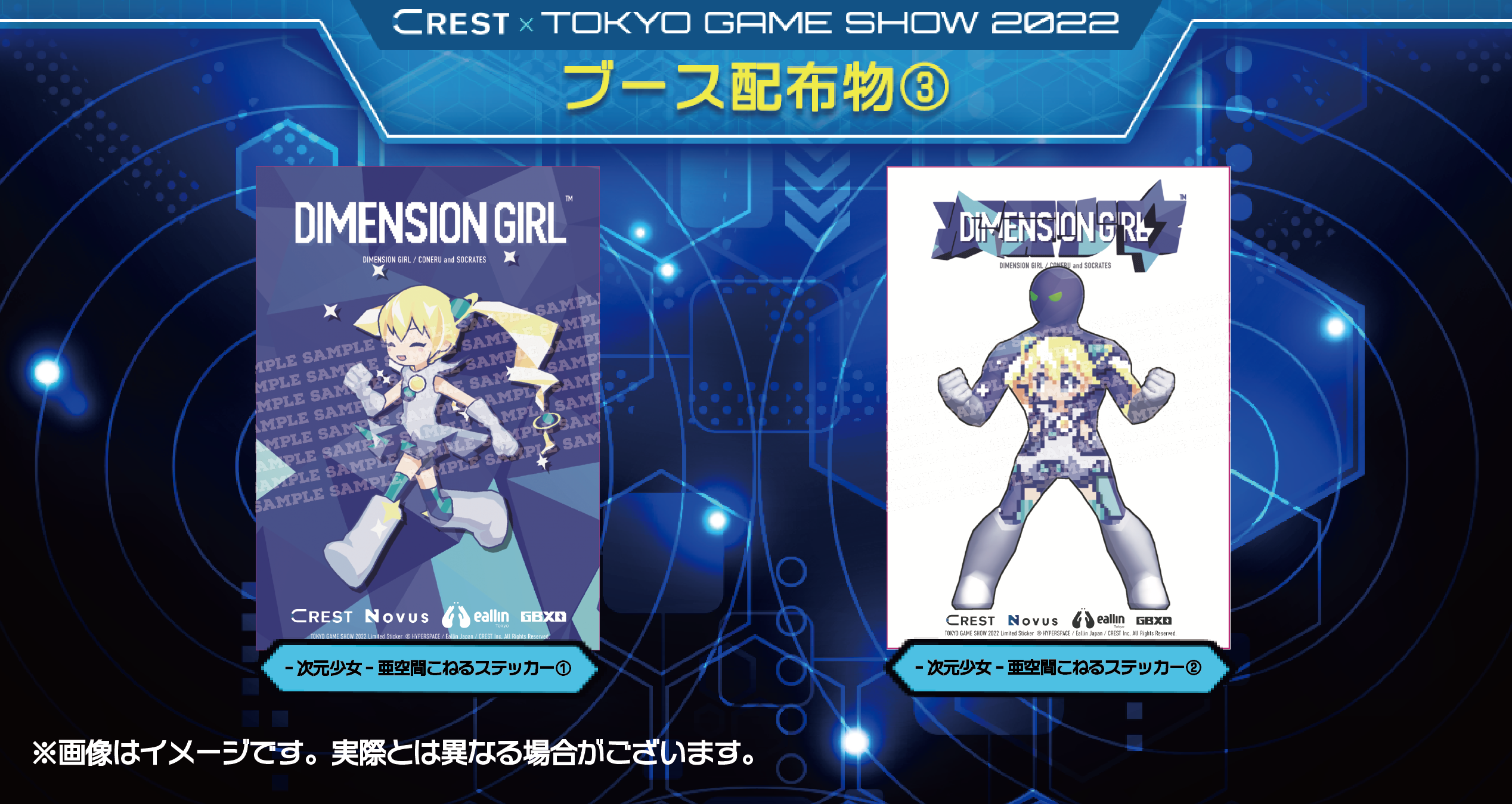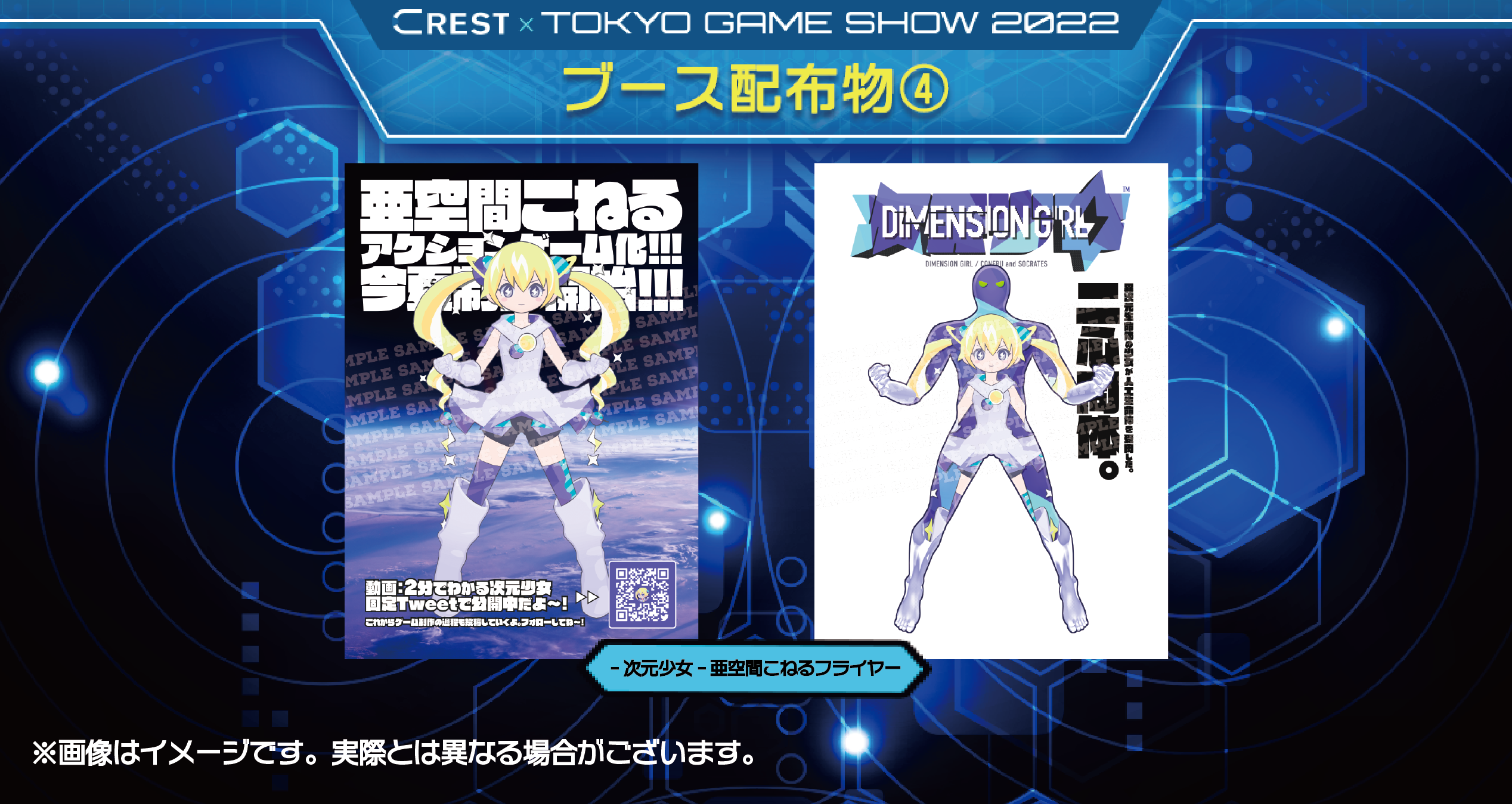 『DIMENTION GIRL -次元少女-亜空間こねる』より、CRESTブースでフライヤーを配布。表と裏でデザインが違うTGS2022特製フライヤーをぜひゲットしてください。