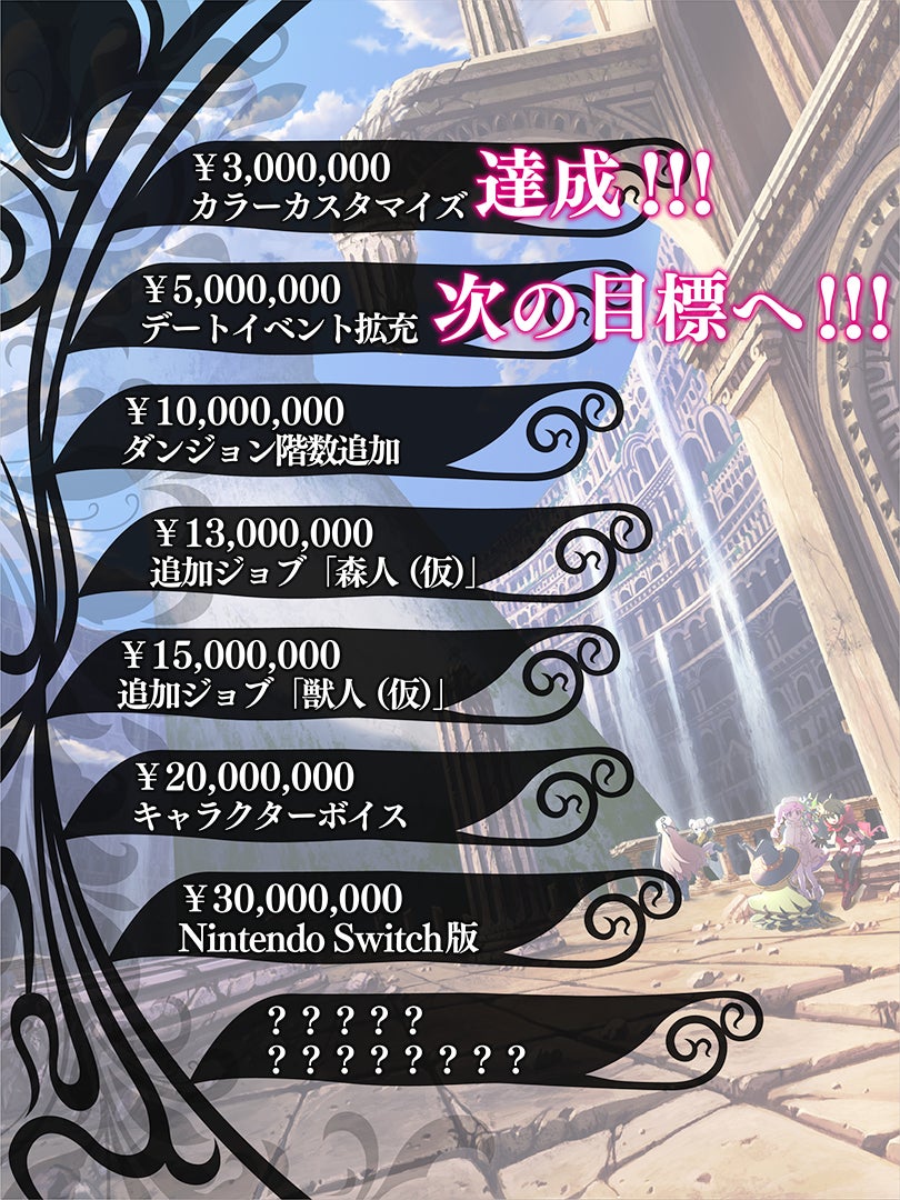 本作は既に1つ目のストレッチゴールを達成。イベントやダンジョンの拡大、新ジョブ追加、Nintendo Switch版開発など様々なストレッチゴールを達成すべく皆様の支援をお待ちしています。