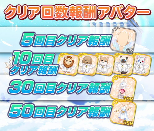 クリア回数に応じて「【SSR】シルクのドレス」等、とっても可愛い♪限定豪華報酬をゲットしちゃおう♡