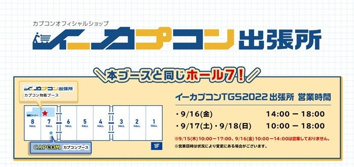 9月16日(金) 14:00より、TGS会場物販ブース「イーカプコン TGS2022 出張所」OPEN予定!