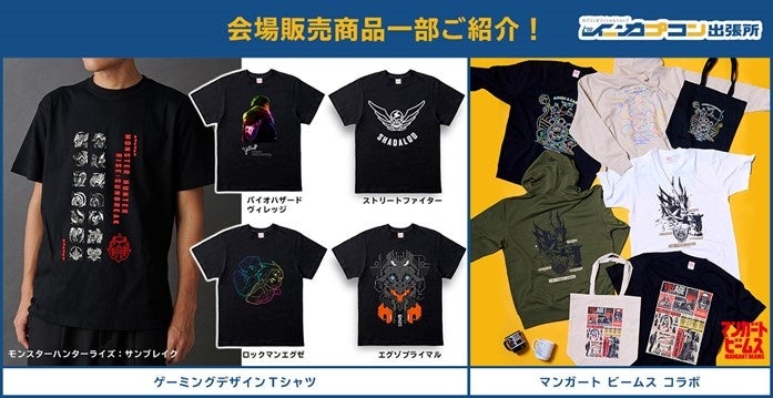 TGS2022記念新商品の「マンガート ビームス」とのコラボ商品等「先行販売商品」や、会場で販売開始となる「ゲーミングデザインTシャツ」など、出展タイトル・人気タイトルのグッズを販売予定!