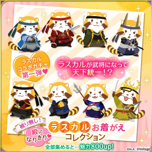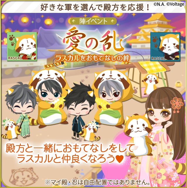 株式会社ボルテージ(本社:東京都渋谷区 代表取締役:津谷 祐司)は、提供中のボル恋タイトル「天下統一恋の乱 Love Ballad ~華の章~」において、ラスカルとのコラボ企画を9月12日(月)より開始することをお知らせいたします。