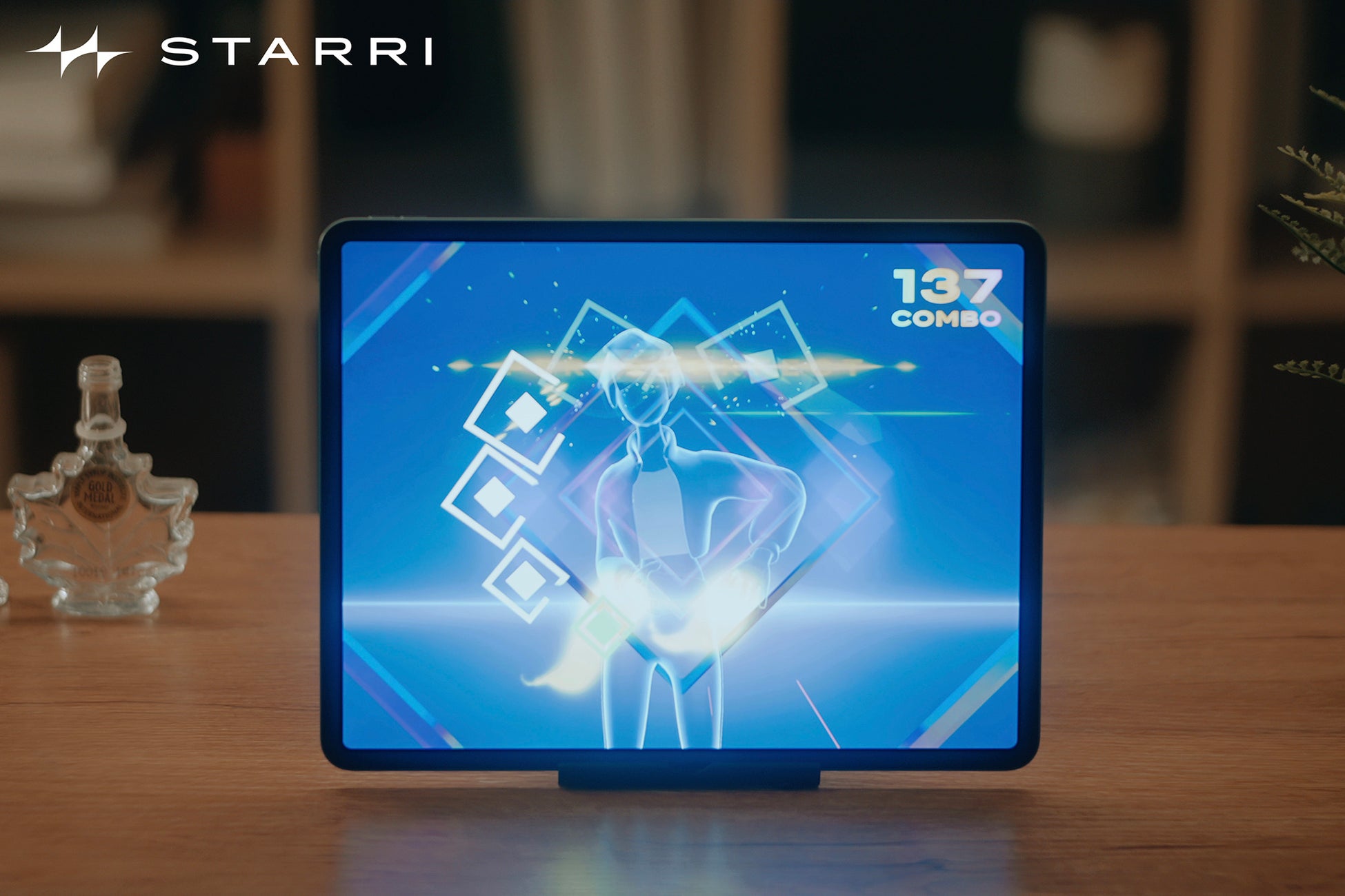『Starri』は、このジャンルのコンソールやVRタイトルを彷彿とさせる没入型の音楽モーション体験が、ヘッドセットや追加のセンサーなしで、あらゆるモバイルデバイスでプレイできるようになった画期的な作品です。前面カメラを搭載したスマートフォンやタブレットだけで、いつでもアクションに飛び込むことができます。家の中のどのコーナーでも、身近で簡単に利用することができます。