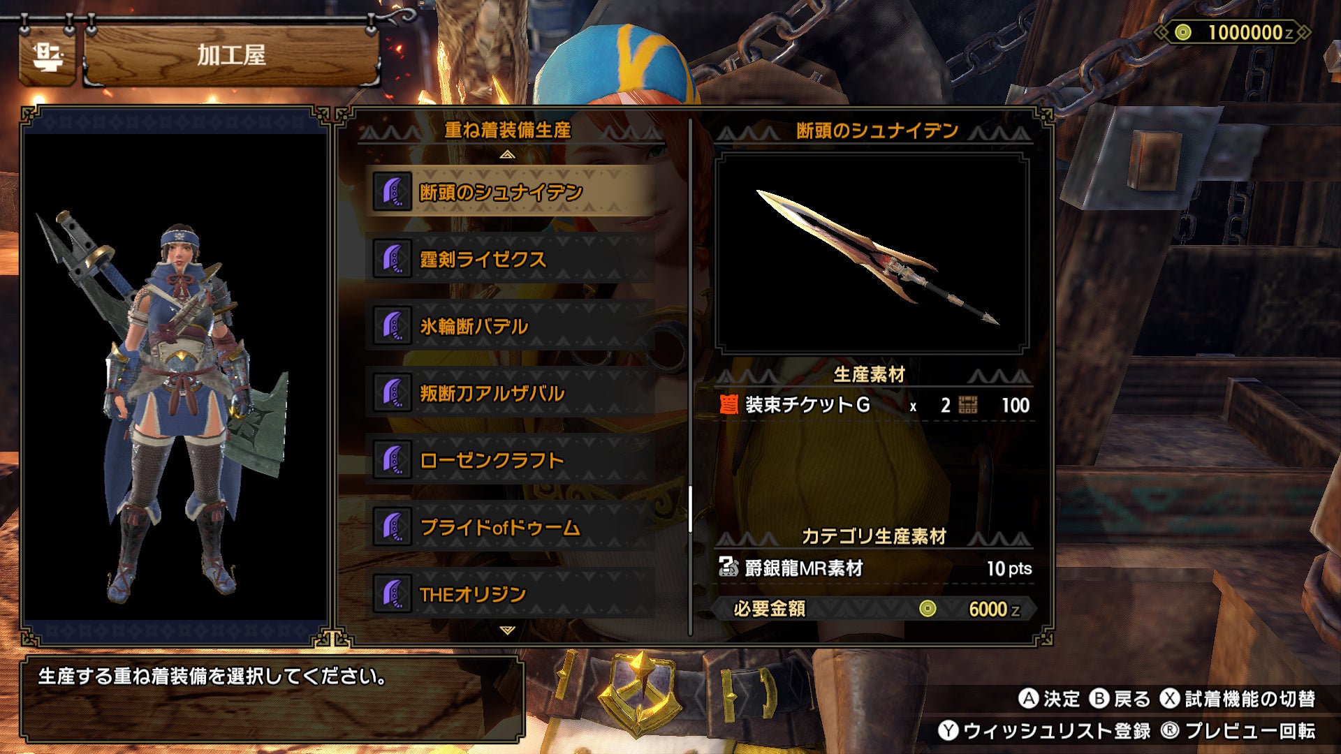 ※加工屋で生産するには、MR進行を進める必要があります。購入した重ね着武器の変更はいつでも設定可能です。