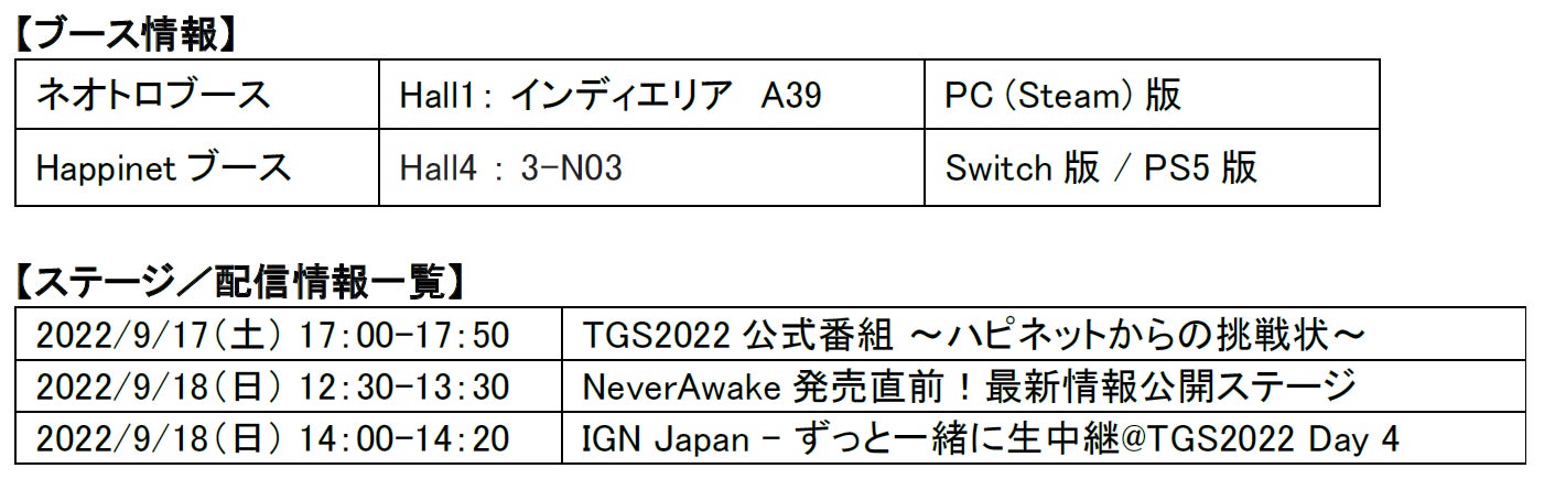 | 公式ページ | https://neverawake.neotro.jp/ |