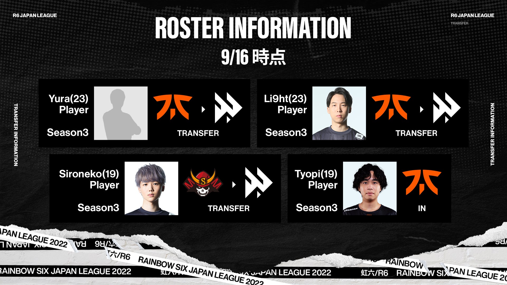 ■最終Seasonがいよいよ明日開幕!各チームが選手移籍で逆転優勝を狙う「X-MOMENT Rainbow Six Japan League 2022 Season3(RJL 2022 Season3)」