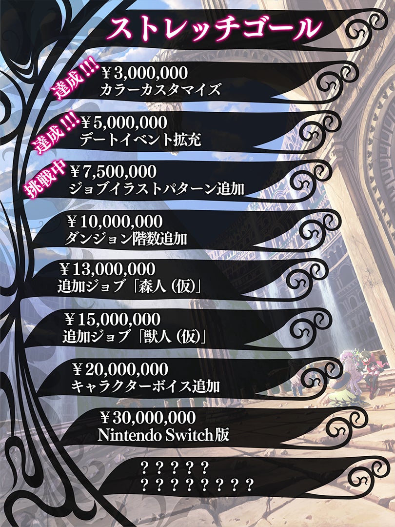 新ストレッチゴール以降も、イベントやダンジョンの拡大、新ジョブ追加、Nintendo Switch版開発など様々なストレッチゴールをご用意しております。皆様の支援をお待ちしています。