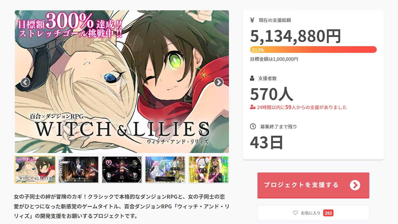 株式会社ストロマトソフトは「百合」をテーマとしたsteam向け新作ダンジョンRPG「ウィッチ・アンド・リリィズ」の開発資⾦調達を⽬指し、2022年9⽉14⽇(⽔)よりCAMPFIREにてクラウドファンディングを実施しておりましたが、⽬標⾦額の500%を超える⽀援を募ることに成功いたしました。これに併せて更なる⽀援を募るため新たなストレッチゴールの中間目標を追加いたしました。さらに公式twitteにて漫画連載を開始したことをお知らせいたします。