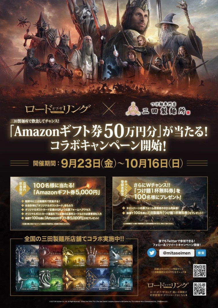 キャンペーン名:ロード・オブ・ザ・リング 戦いの幕開け×つけ麺専門店 三田製麺所