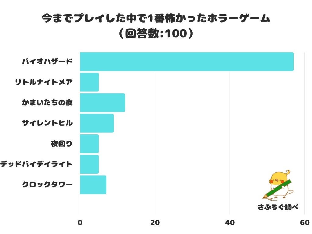 今までプレイした中で1番怖かったホラーゲームをアンケートにて調査したところ、1位は「バイオハザード」でした。